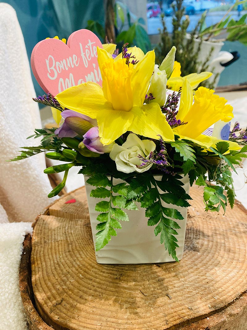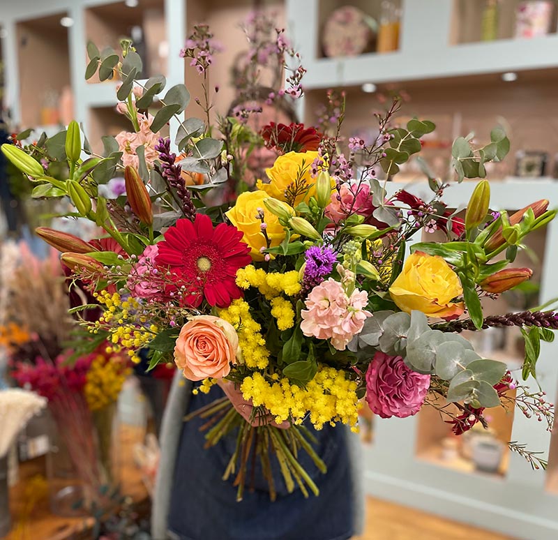 Un magnifique bouquet de fleurs de saison réalisé par Pom’Violette à offrir à l’occasion de la fête des grands-mères. Vous pouvez demander à votre fleuriste de le personnaliser en fonction de votre budget et de vos préférences. Le bouquet fête des grands-mères est disponible à la livraison à Gex et dans les environs.